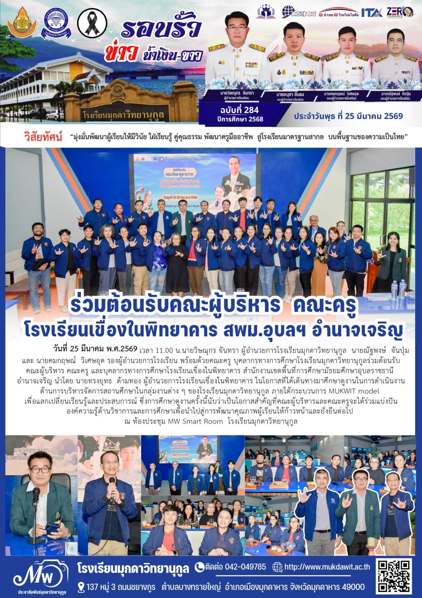 โรงเรียนมุกดาวิทยานุกูล ฉบับที่ 284 ประจำวันพุธที่ 25 มีนาคม 2569 / จดหมายข่าวโรงเรียนในสังกัด / By ชุติมา ชัยนา รร.มุกดาวิทยานุกูล