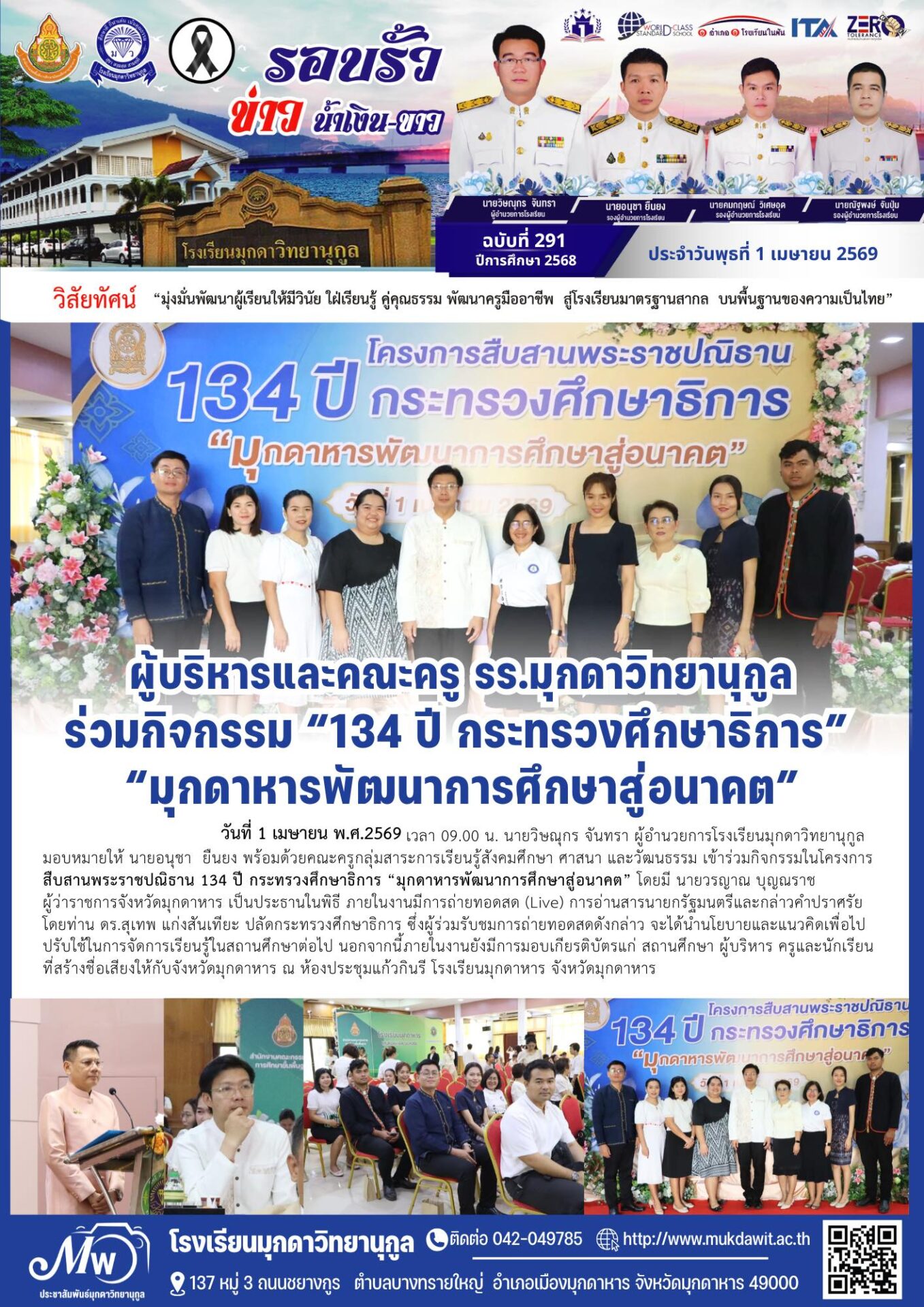 โรงเรียนมุกดาวิทยานุกูล ฉบับที่ 291 วันที่ 1 เมษายน 2569 / จดหมายข่าวโรงเรียนในสังกัด / By ชุติมา ชัยนา รร.มุกดาวิทยานุกูล