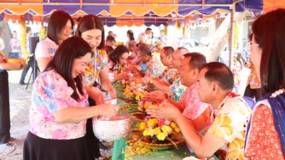 ดร.พลชัย ชุมปัญญา ผู้อำนวยการสำนักงานเขตพื้นที่การศึกษามัธยมศึกษามุกดาหารพร้อมด้วย นางวริศรา สัพโส นายวิทยา วังคะฮาต รองผู้อำนวยการสำนักงานเขตพื้นที่การศึกษามัธยมศึกษามุกดาหาร นำบุคลากรในสังกัดร่วมสืบสานประเพณีไทย จัดกิจกรรมสรงน้ำพระ รดน้ำขอพร เนื่องในวันสงกรานต์ ประจำปี พ.ศ. 2569 โดยมี ผู้ทรงคุณวุฒิ คณะ อ.ก.ค.ศ.เขตพื้นที่การศึกษามัธยมศึกษามุกดาหาร คณะกรรมการติดตาม ตรวจสอบประเมินผลและนิเทศการศึกษาของเขตพื้นที่การศึกษา (ก.ต.ป.น.) คณะผู้บริหารสถานศึกษา และบุคลากรในสำนักงานฯ เข้าร่วมกิจกรรมโดยพร้อมเพรียงกัน ณ สพม.มุกดาหาร