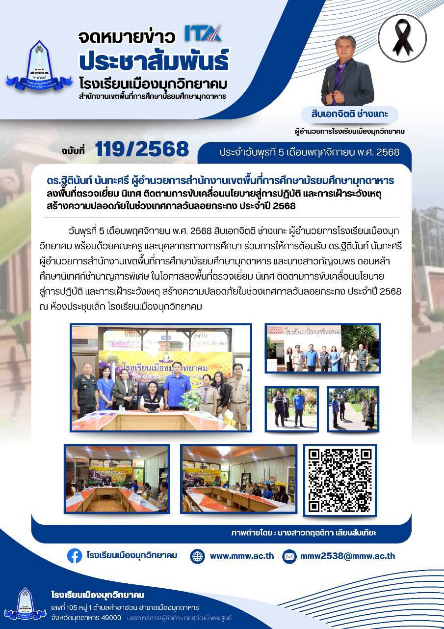 โรงเรียนเมืองมุกวิทยาคม ฉบับที่ 119 วันที่ 5 พฤศจิกายน 2568 จดหมายข่าวโรงเรียนในสังกัด / พิมพ์ธิดา อารีรักษ์ โรงเรียนเมืองมุกวิทยาคม ฉบับที่ 119 วันที่ 5 พฤศจิกายน 2568 Read More »