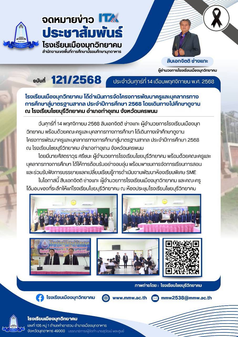 โรงเรียนเมืองมุกวิทยาคม ฉบับที่ 121 วันที่ 14 พฤศจิกายน 2568 จดหมายข่าวโรงเรียนในสังกัด / พิมพ์ธิดา อารีรักษ์ โรงเรียนเมืองมุกวิทยาคม ฉบับที่ 121 วันที่ 14 พฤศจิกายน 2568 Read More »