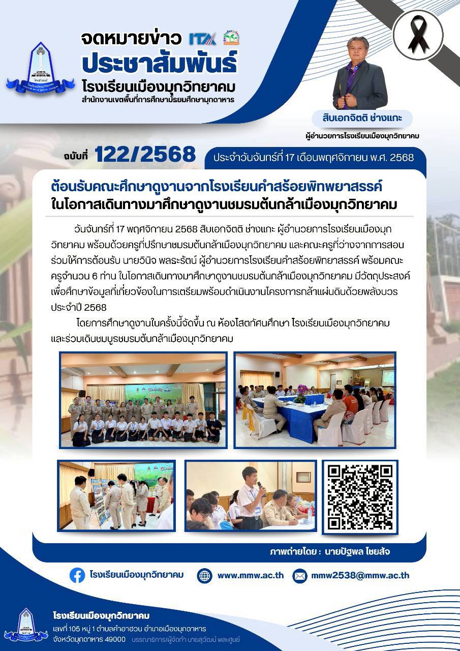 โรงเรียนเมืองมุกวิทยาคม ฉบับที่ 122 วันที่ 17 พฤศจิกายน 2568 จดหมายข่าวโรงเรียนในสังกัด / พิมพ์ธิดา อารีรักษ์ โรงเรียนเมืองมุกวิทยาคม ฉบับที่ 122 วันที่ 17 พฤศจิกายน 2568 Read More »