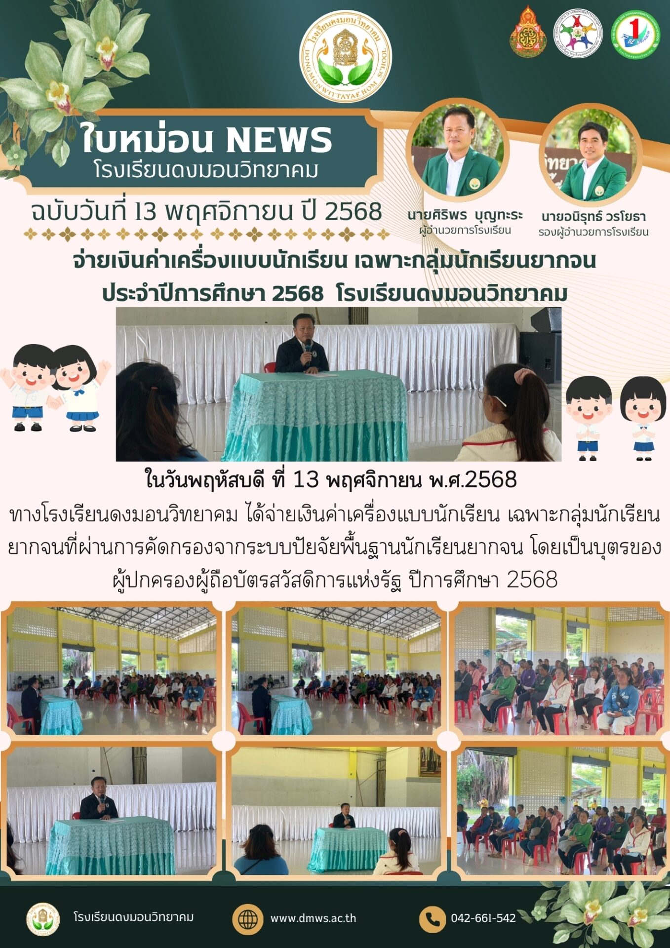 โรงเรียนดงมอนวิทยาคม วันที่ 25 พฤศจิกายน 2568 จดหมายข่าวโรงเรียนในสังกัด / พิมพ์ธิดา อารีรักษ์ โรงเรียนดงมอนวิทยาคม วันที่ 25 พฤศจิกายน 2568 Read More »