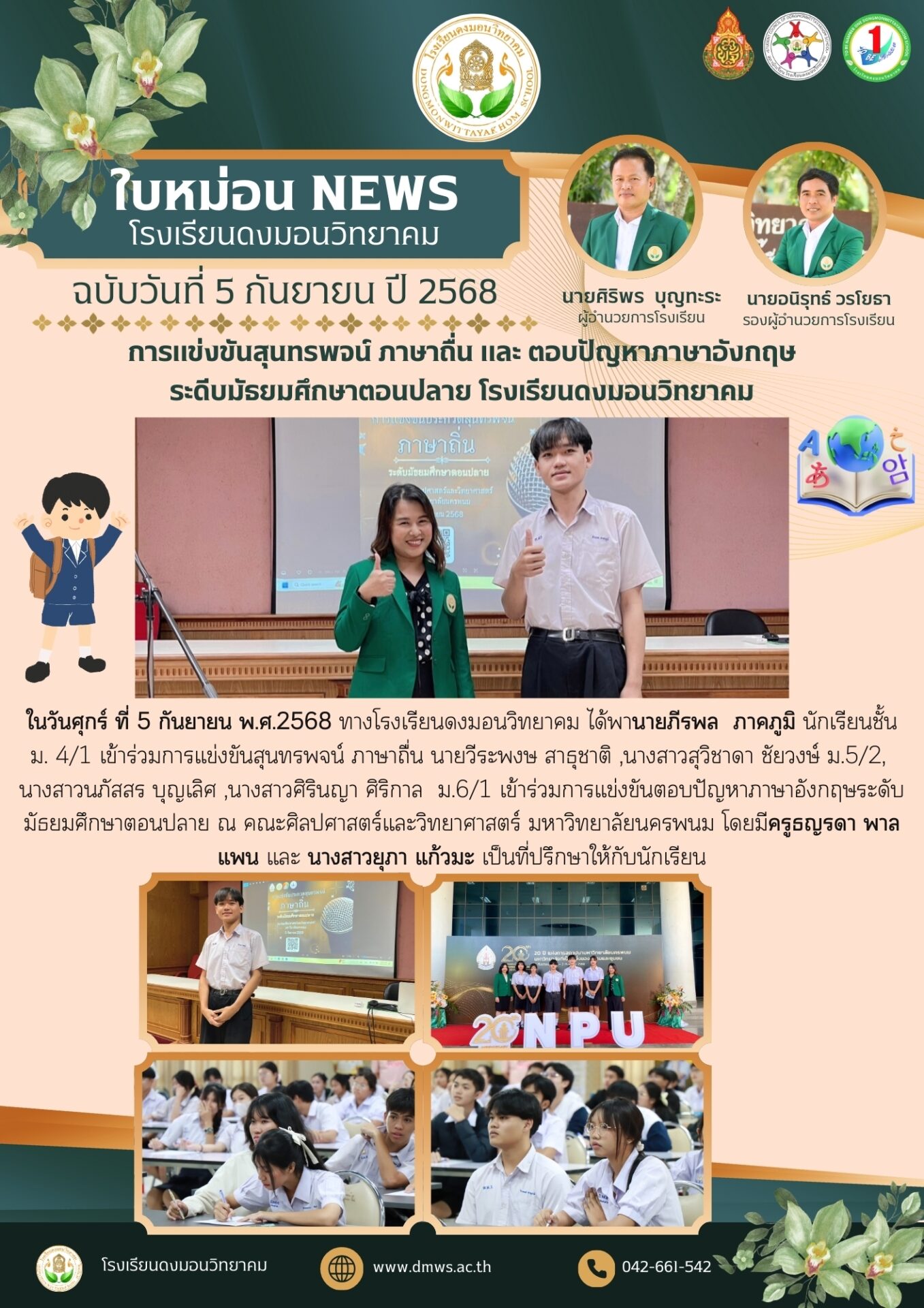 โรงเรียนดงมอนวิทยาคม วันที่ 5 กันยายน 2568 จดหมายข่าวโรงเรียนในสังกัด / พิมพ์ธิดา อารีรักษ์ โรงเรียนดงมอนวิทยาคม วันที่ 5 กันยายน 2568 Read More »