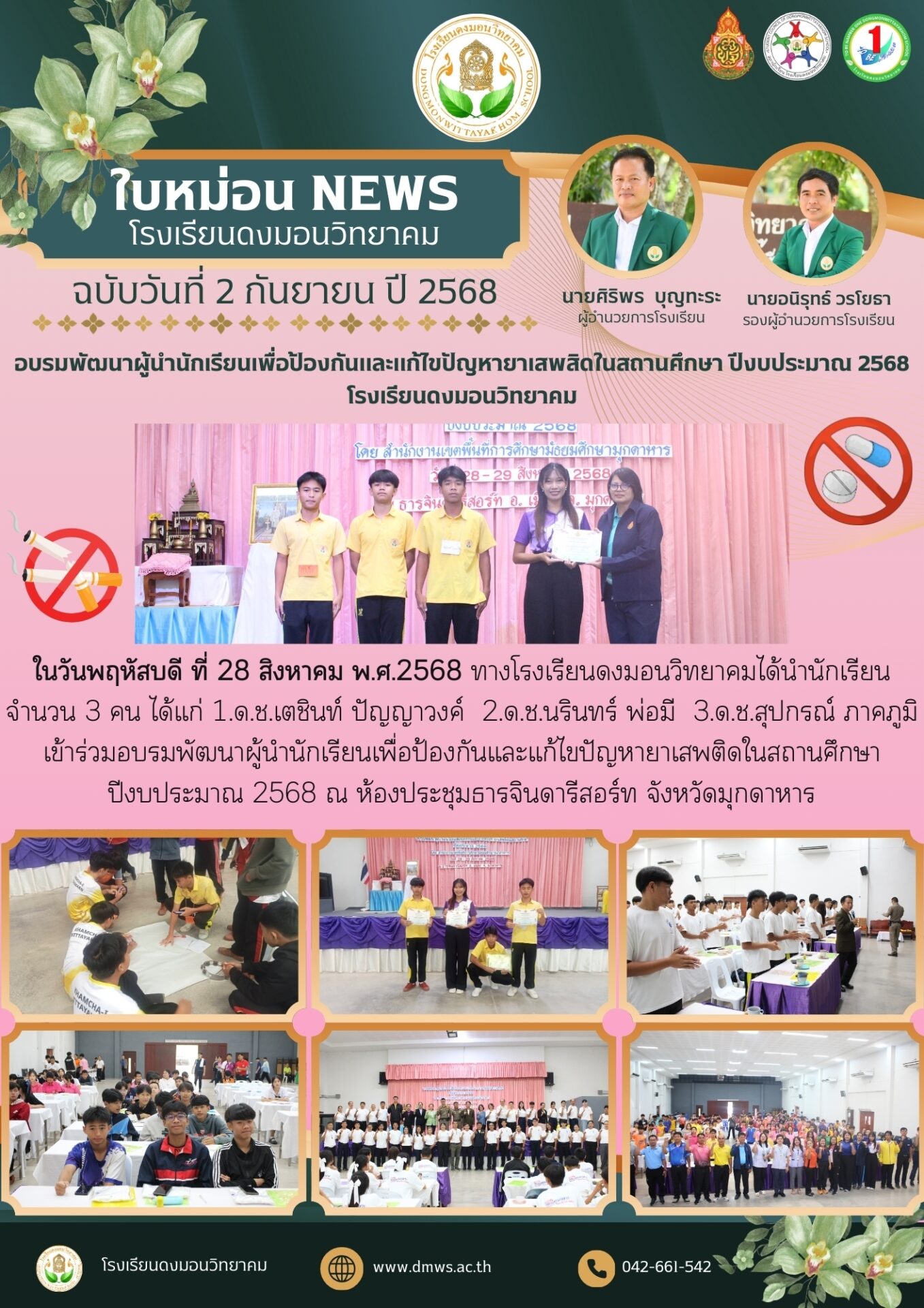 โรงเรียนดงมอนวิทยาคม วันที่ 2 กันยายน 2568 จดหมายข่าวโรงเรียนในสังกัด / พิมพ์ธิดา อารีรักษ์ โรงเรียนดงมอนวิทยาคม วันที่ 2 กันยายน 2568 Read More »